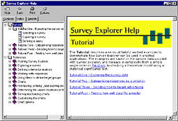 In addition to allowing a range of interactive queries, Survey Explorer allows you to plot graphs, charts, and histograms comparing selected criteria. Memphis commissioned Human-Computer Interface to develop a documentation design style for the product, and then produce both a printed user guide, and a comprehensive HTML-based help file. The help included both a series of simple tutorials, designed to illustrate a range of common queries, and detailed reference information about the product, with a comprehensive index for ease of reference. For more information visit: |